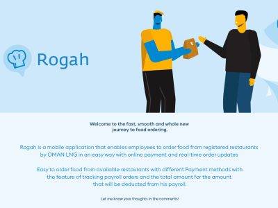 Rogah is a mobile application that enables employees to order food from registered restaurants by OMAN LNG in an easy way with online payment and real-time order updates.